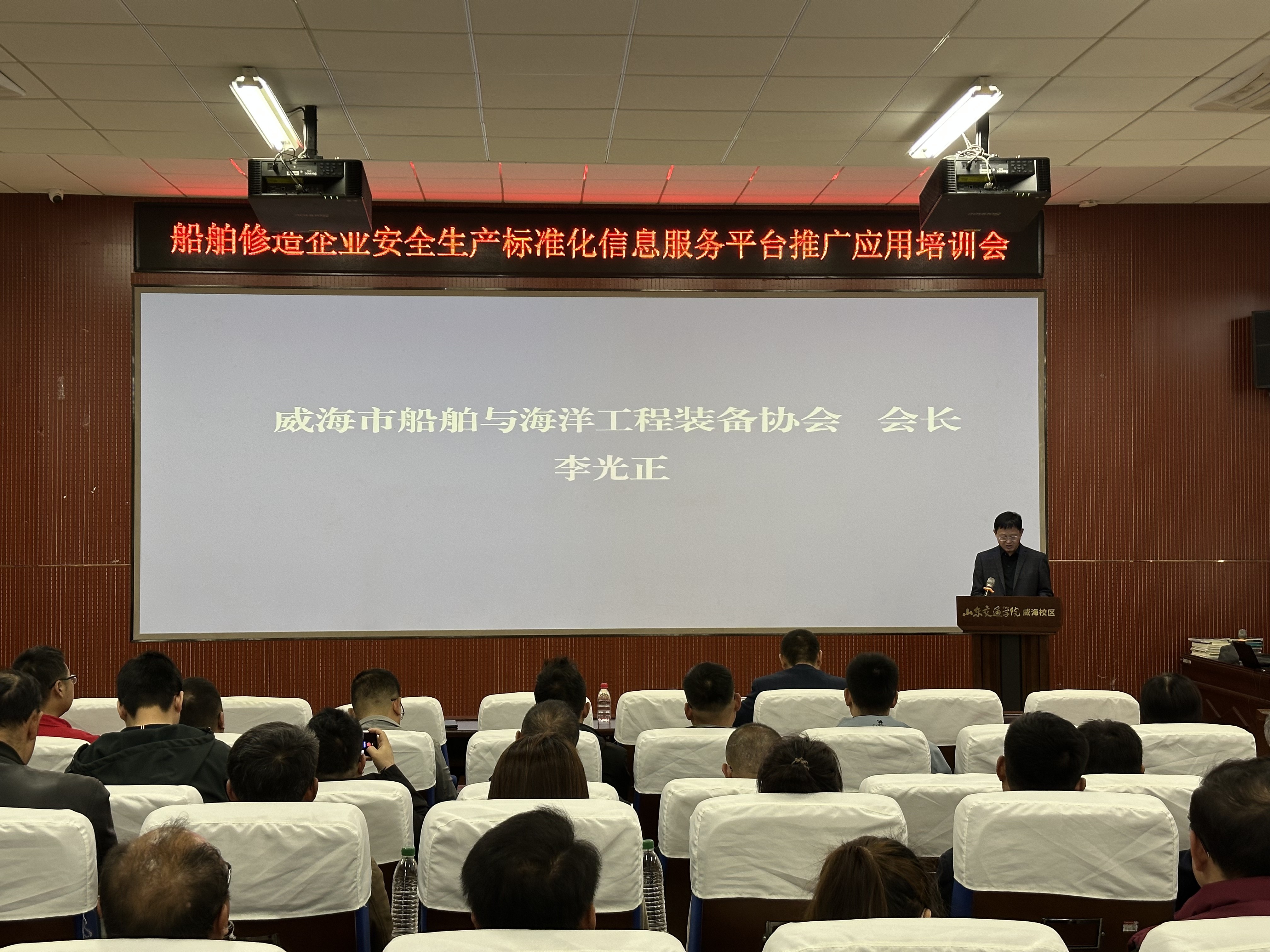 2025年4月18日周五,由威海市船舶与海洋工程装备协会主办的船舶修造企业安全生产标准化信息服务平台推广应用培训会在威海市山东交通学院威海新校区内召开。